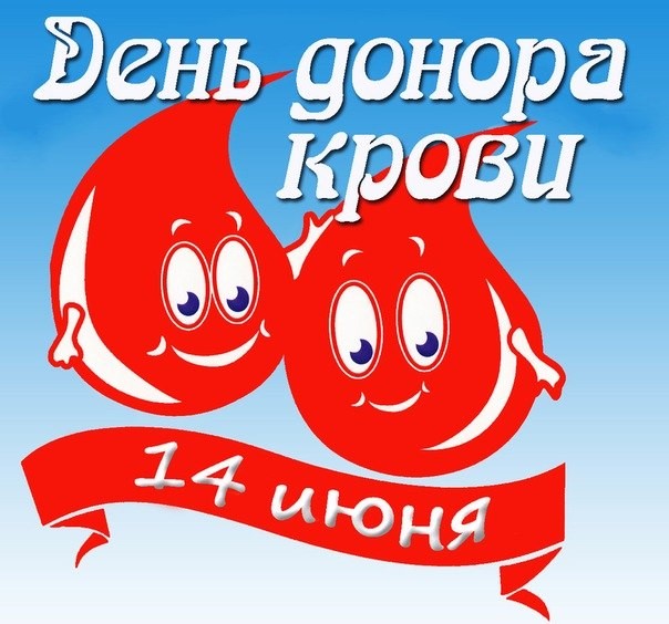 14 июня - Всемирный день донора крови. В этот день благодарят доноров, которые отдают свою кровь, и тем самым спасают человеческие жизни. Призывают большее число людей во всем мире добровольно и регулярно сдавать свою кровь. Лозунг этого дня: «Сдавайте бесплатно, сдавайте часто. Донорство крови - это важно!».